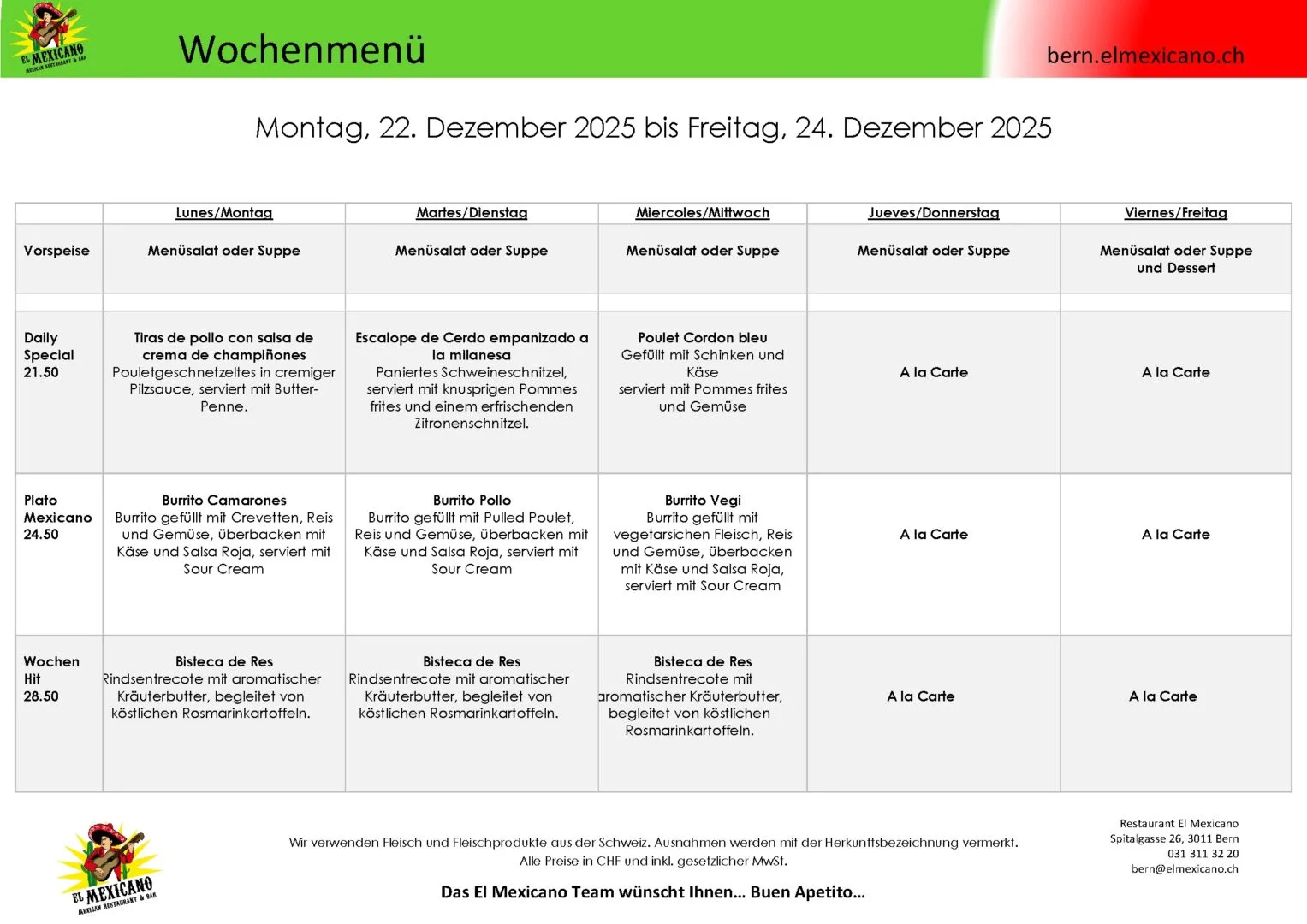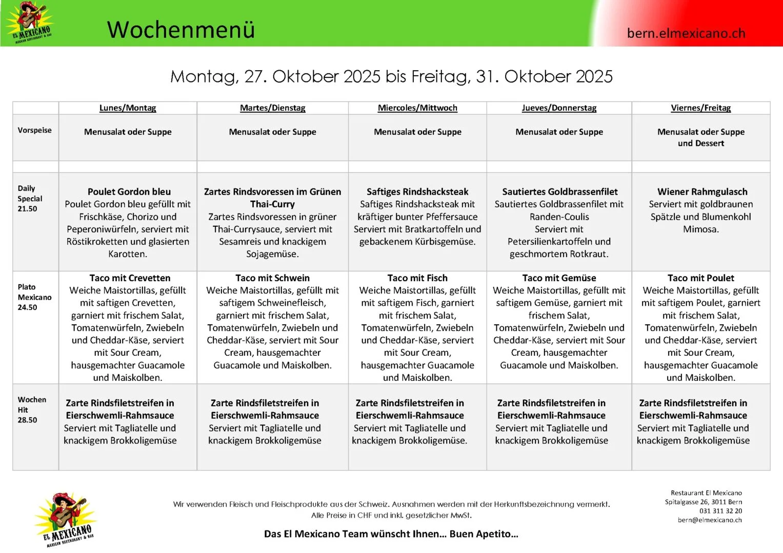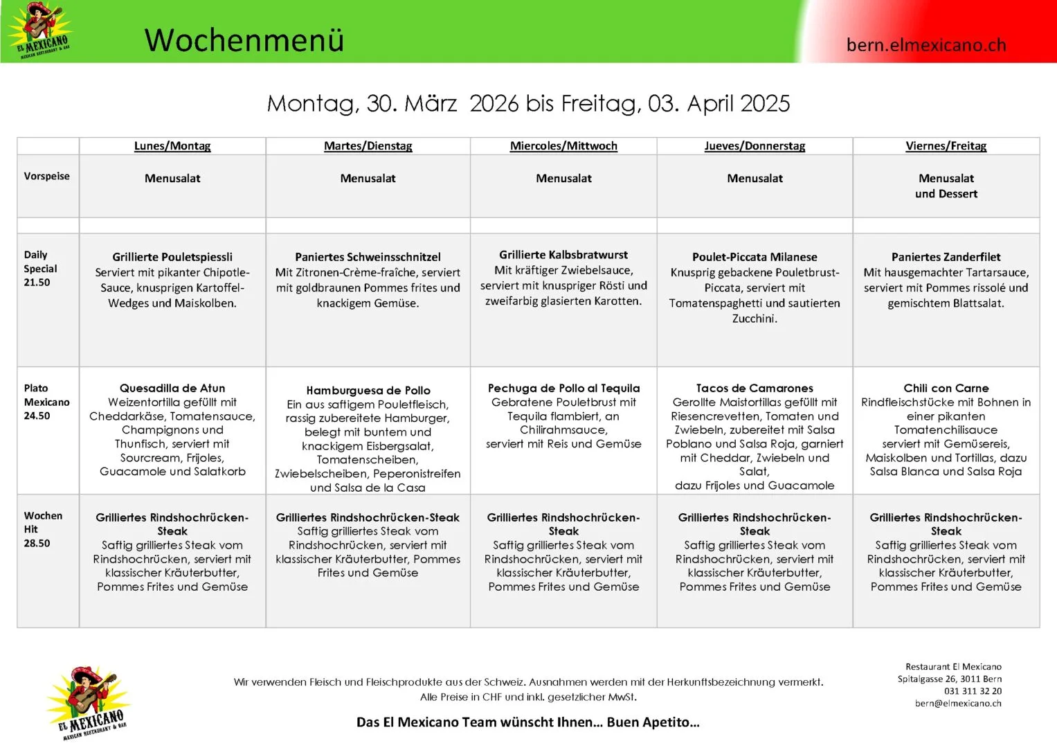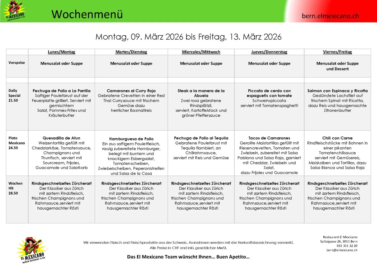 Chaque semaine, une offre fraîche et variée pour vous, pour nous rendre visite à midi, du lundi au vendredi.